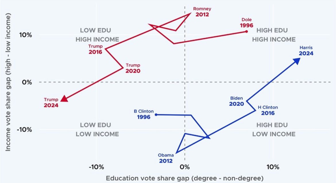 The parties did not switch immediately, it was a gradual progression of campaign promises for free stuff and political catering to specific demographics. Before the turn of the century, republicans dominated the voting bracket of high-income earners, and the college educated elite while Democrats were considered the party of the common man. Those voting blocs have almost entirely switched in the last election.